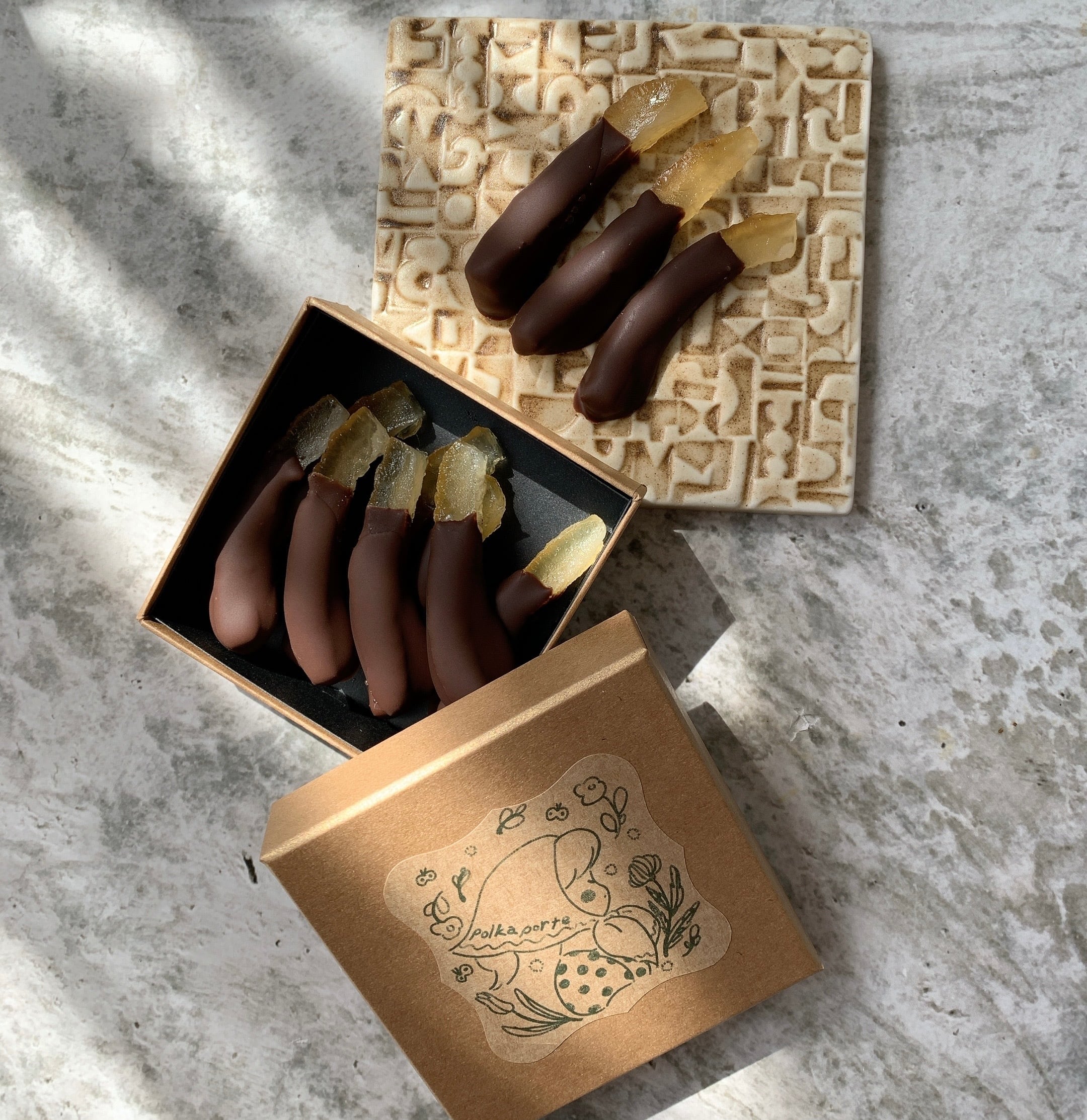 レモンのコンフィをスイートチョコレートで二度コーティング。 爽やかな香りとほろ苦さを楽しめる大人の柑橘ショコラです。